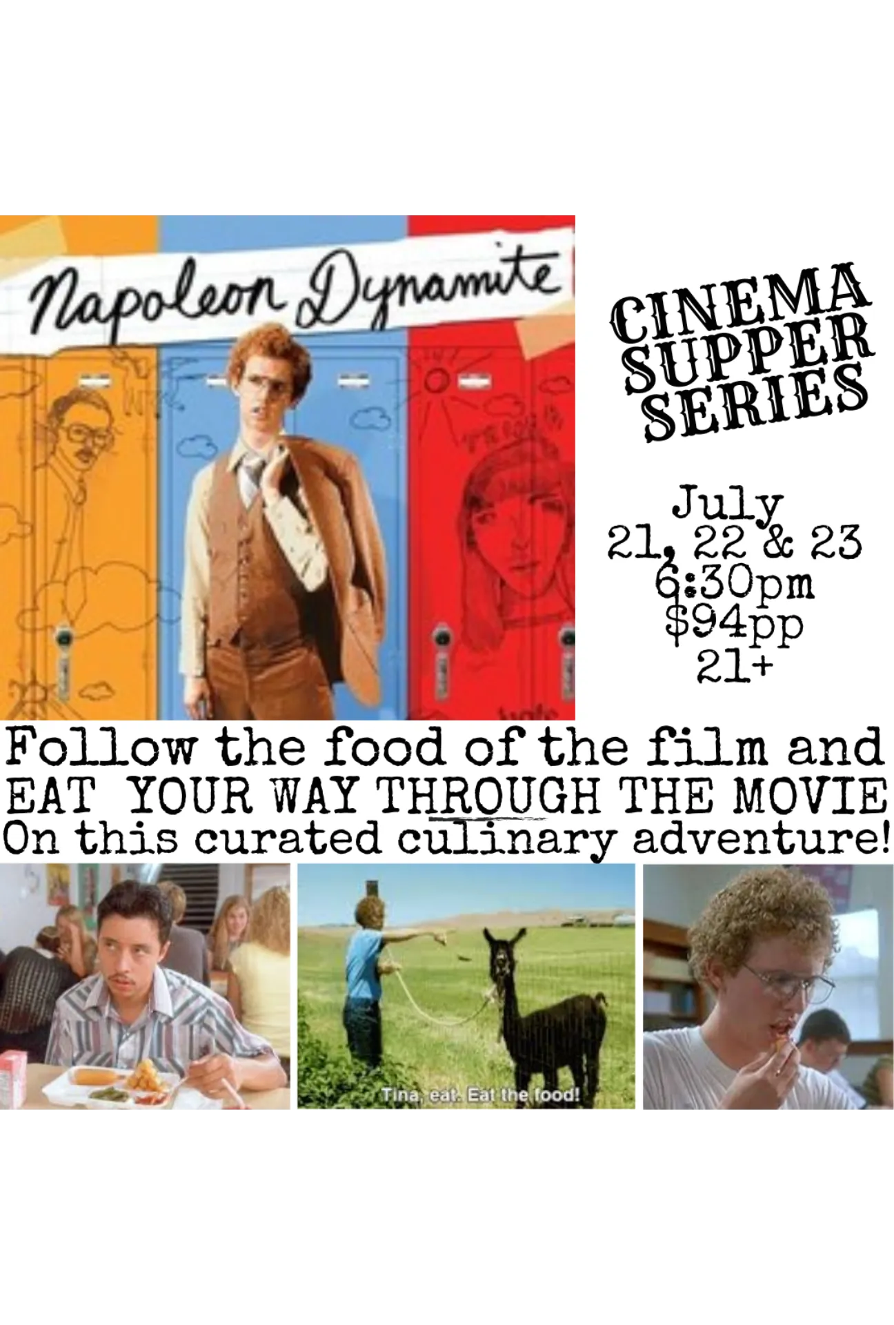 CINEMA SUPPER SERIES: Napoleon Dynamite ($94 +tax)