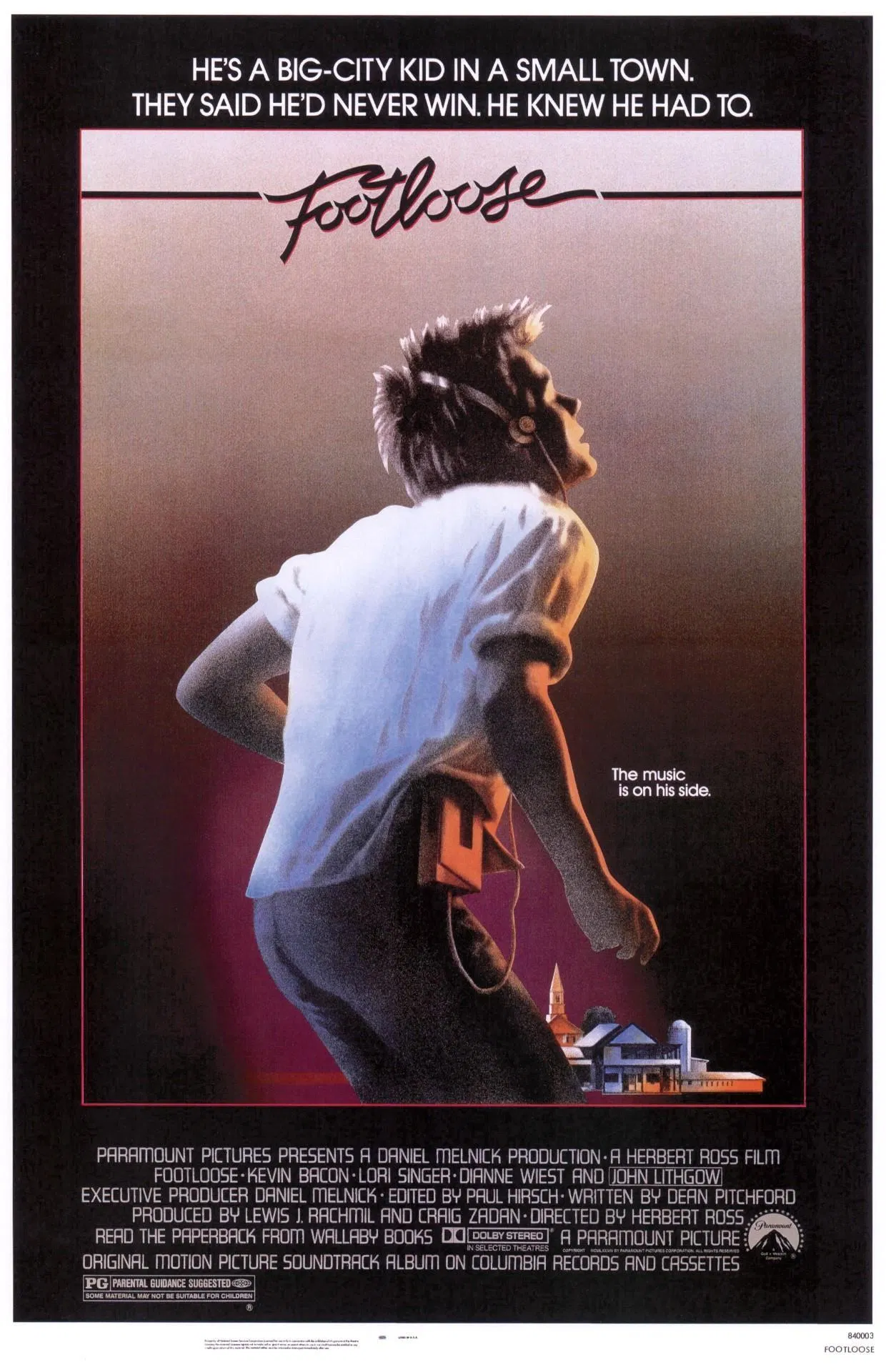 A city teenager moves to a small town where rock music and dancing have been banned, and his rebellious spirit shakes up the populace.